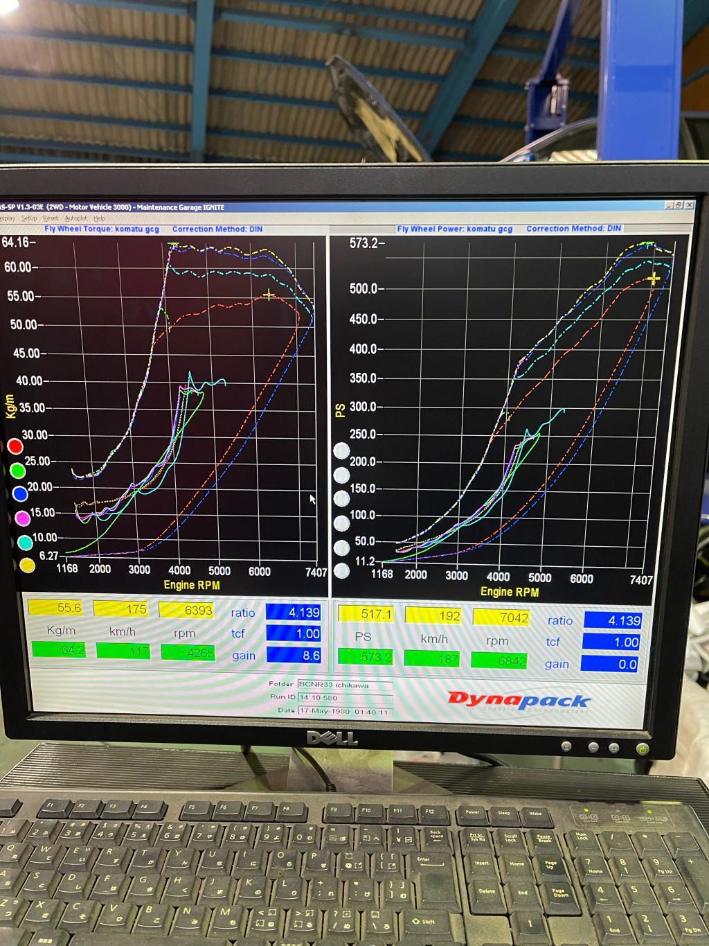 最終結果、ブースト1.5K 580PS 67NM に落ち着かせました。