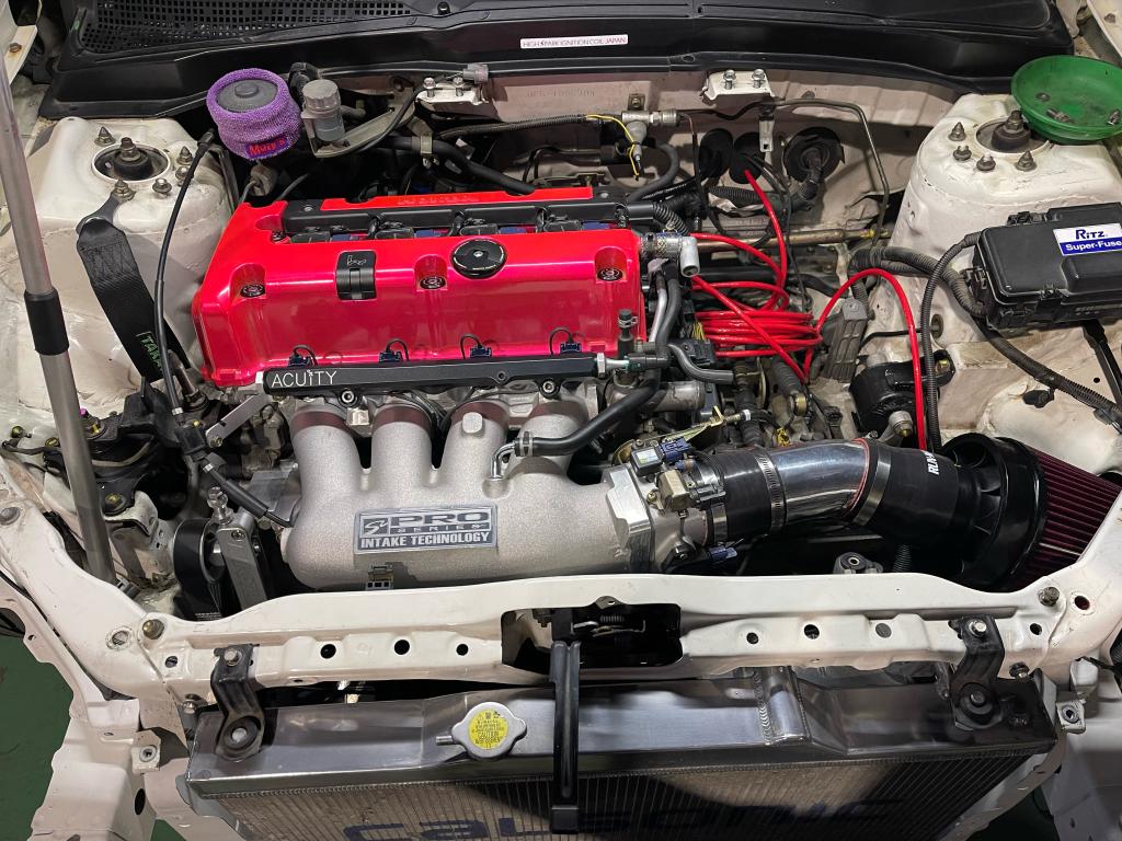 DC5絶賛作業中です。 今回はパワステから電動パワステへ変更、エンジンルーム諸々、CPU(MOTECM400)セッティング 等々盛り沢山です。 今回は海外の部品も使い作業をしております。 来年のサーキットが楽しみな一台ですね!! 現在入庫車両も随時作業中です。