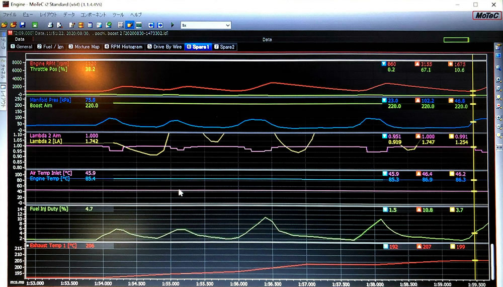 MoTeCでセッティングするメリットはたくさんありますが最大のポイントはつくり手の思いに応えてくれるところ。普通なら違いが分からないようなことも、MoTeCによりその違いが明らかになり、精度の高いCPUセッティングが可能となります。